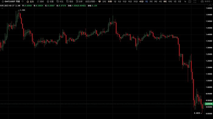 5月26日24点起,STEPN项目的主要代币之一GMT就开始了异动,价格从1.3美元附近开始跳水,截至发稿前已经跌至0.8美元,夜间跌幅逾40%。