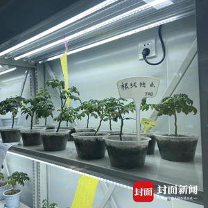 实验室内,园艺师正在观察作物生长情况
