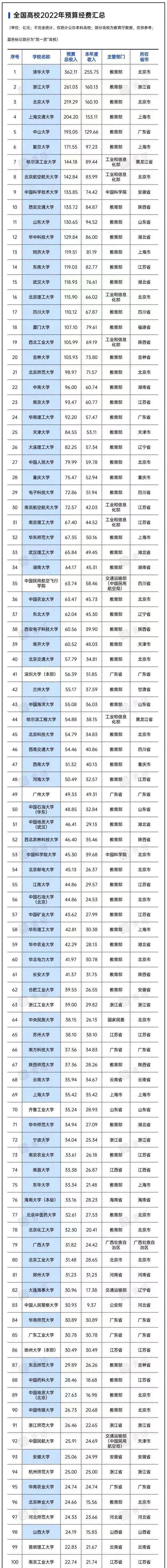 近日,教育部、工信部直属高校陆续公布了2022年部门预算报告。清华大学以362.11亿元蝉联国内高校经费榜第一,浙江大学以261.03亿元位居第二,北京大学以219.29亿元位居第三。