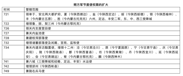 为了应对持续不断的北部安全威胁,戍守“国之北门”的朔方军逐步壮大。721年,在平定又一次叛乱之后,唐廷设立朔方军节度使;到734年,其管辖区域逐步扩大到整个关内道,主管范围从军事跨界到营田、盐务、马匹和处理边族事务等诸多方面。