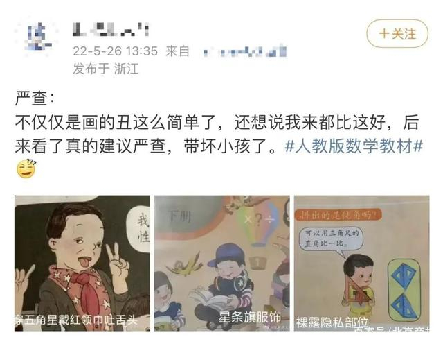 近日,人教版小学数学教材的插画引起巨大争议,不少网友纷纷指责插画人物长相丑陋、引人不适,甚至隐含有不良性暗示等内容。