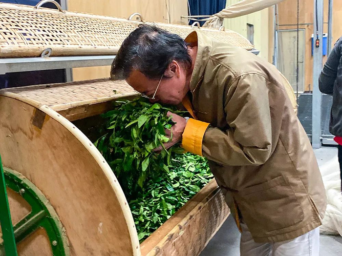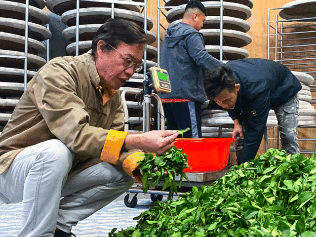 林当山老师制茶,利用多年的经验,使用细腻的文火反复烘焙茶叶。
