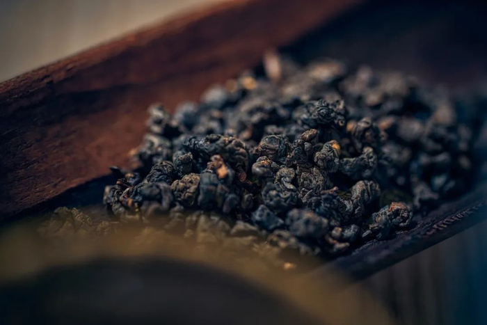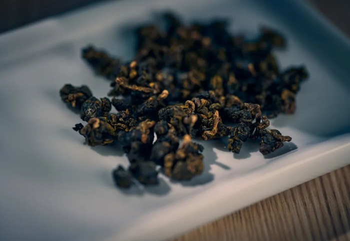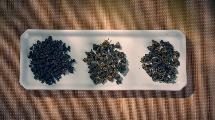 茶叶颜色要比普通的冻顶乌龙更乌亮一点,这是因为比赛级的茶经过中度的人工炭焙,烘焙程度更深。