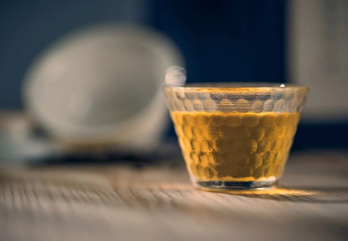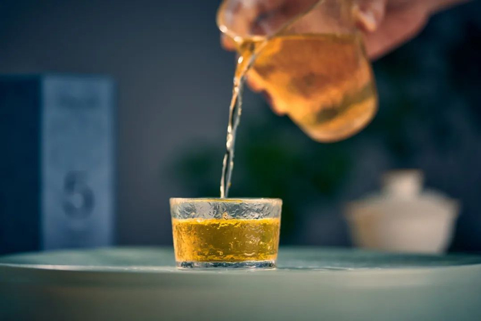 冲泡后,茶汤澄明浅金黄。