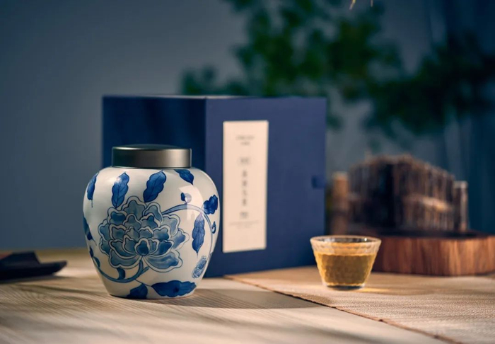 外包装上,茶叶罐采用景德镇本土传统泥料、釉料配方。由经验丰富的景德镇制瓷师傅手工烧制而成。