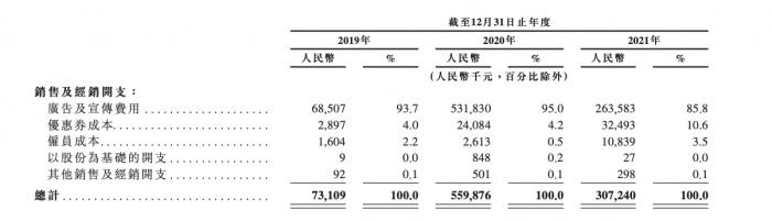 2019-2021年,微拍堂销售及经销开支总计超9亿元。尤其是2020年,该项开支达5.6亿元,占当年总收入的52.3%,其中广告宣传费用就有5.3亿元。