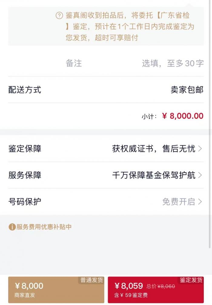 “捡漏”吸引一众围观群众下单,但赝品次品问题不断。究其根本,消费者购买文玩时,按需自选“鉴定服务”,支付鉴定费后,商家将产品发到鉴真阁及有证链商家鉴定。