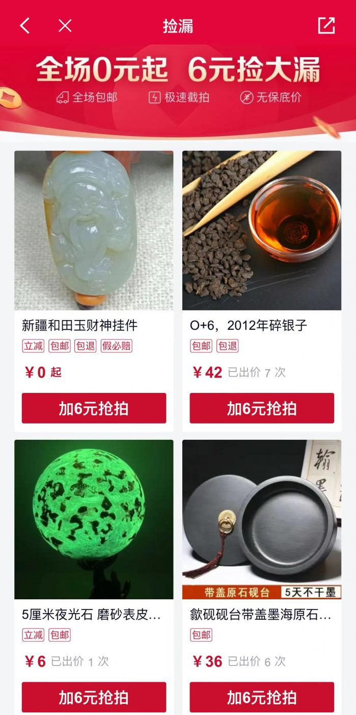 通过图片竞拍及直播竞拍两种方式,消费者在App、微信小程序上对第三方商家提供的商品出价,竞拍到手后,由商家发货,收货后可七天免费退换货。