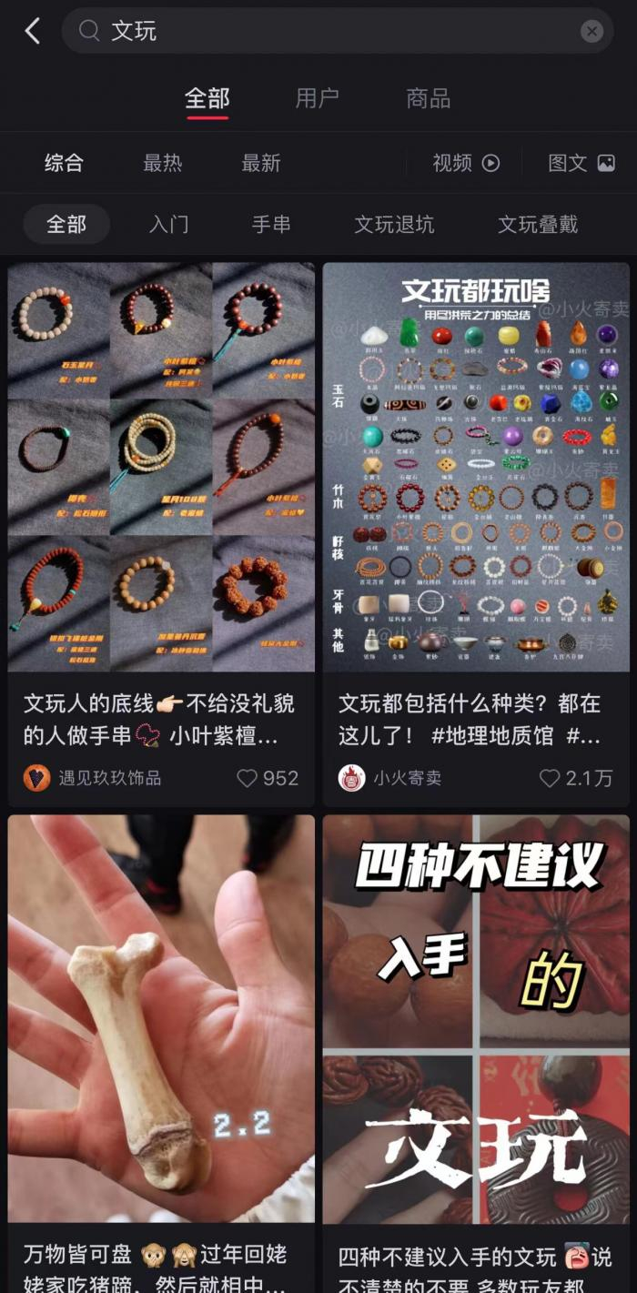 创造新需求的,是看似与老旧藏品气质不搭的Z世代们。所谓潮流是个圈,部分文玩兼具时尚元素,吸引年轻人。他们会在日常服装中加入文玩元素,在社交平台分享收藏核桃、手串和“盘它”的经验。