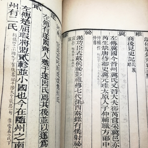 《元和姓纂》,清光绪六年翻刻嘉庆洪氏本,线装四册十卷全,半页十二行,行二十四字,通篇朱墨批校,无印章。全书批校几满,密行细字,字迹极为精细工整,这种书风我十分熟悉,一见即知其必为赵万里先生亲笔。此书曾略加修整,第一册封面已新换,后三册则仍保留了旧装,每册右上角有毛笔书写的“二”“三”“四”序号字样,此亦赵万里藏书特点。我曾藏有任中敏赠送赵万里的《散曲丛刊》一部二十八册,每册右上角也都有赵先生亲笔序号,与此正同。后来仔细翻阅全书,果然在几处批语中发现了“万里案”的字样,赵万里本人批语都是引用《永乐大典》的有关内容,较易区分。