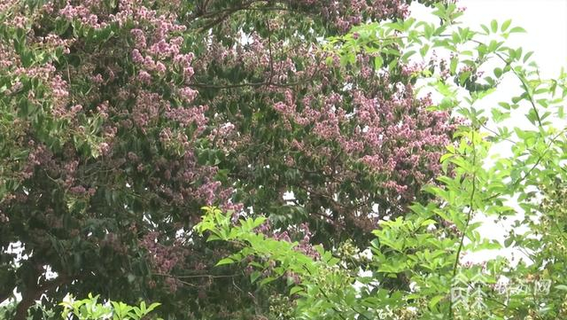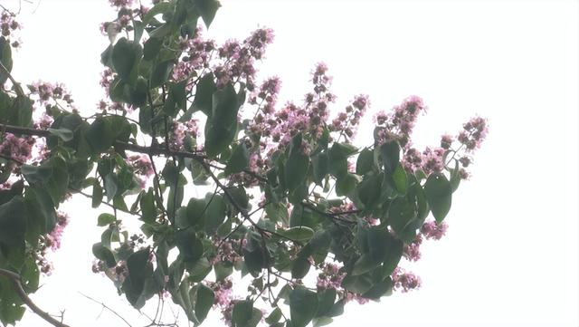 这棵福建紫薇树高8米多,目前已经进入盛花期,树梢紫色的花朵密密匝匝,充满生命力。