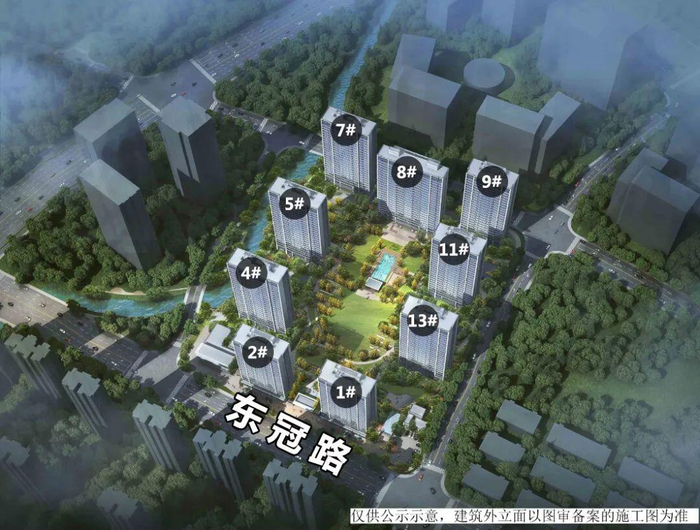 根据公示,规划9幢21F-26F住宅,除此之外还将规划300㎡泳池,室外集中绿地等户外活动场所。