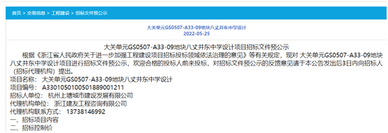 大关单元GS0507-A33-09地块八丈井东中学项目位于杭州市拱墅区大关单元内,东至大关南一苑北区,南至大关南一苑东区,西至杭州通信器材市场,北至八丈井东路。项目投资估算62000万元,建安工程费用约12000万元。