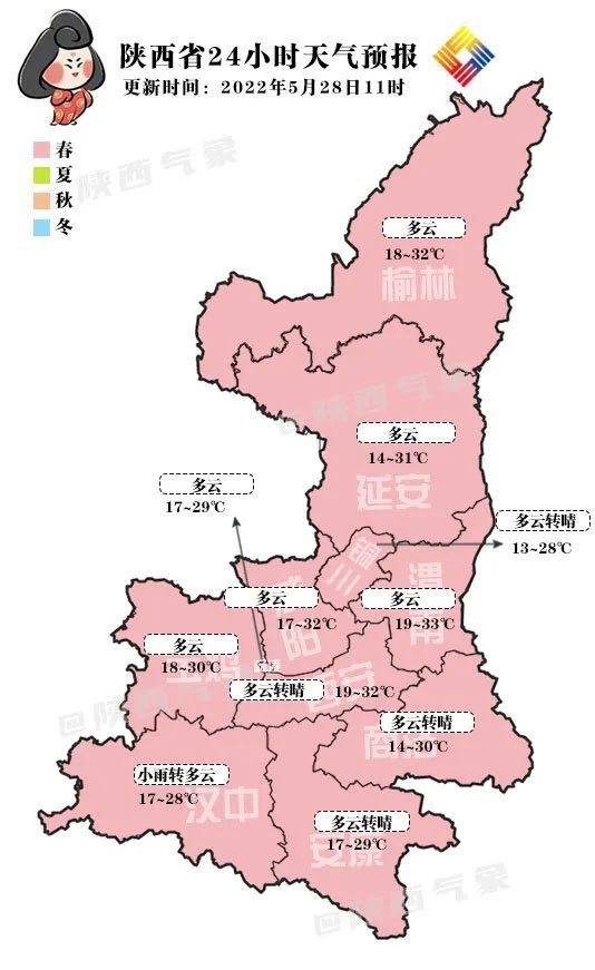 今天下午:陕北、关中晴天间多云,陕南多云间晴天,陕南南部局地有小雨或阵雨。陕北北部有5级左右大风,局地阵风可达6级以上。今天晚上:陕北北部晴天转多云,榆林北部局地有阵雨或雷阵雨;陕北南部、关中、陕南多云间晴天。陕北大部有5-6级偏北风,阵风7级以上。陕北北部日平均气温下降6-8℃。