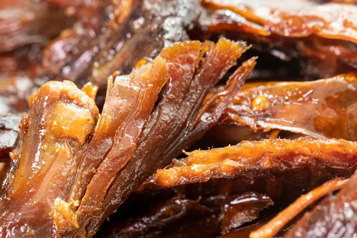 金湘权酱板鸭,辣得爽、香味足,当成解馋肉干撕着吃、当做硬菜下饭吃,作为伴手礼送朋友都是不错的选择。