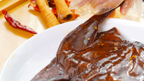 2、自有酱卤配方熬制,添加30多种香料,经过49道工序,味道沁入骨头缝。