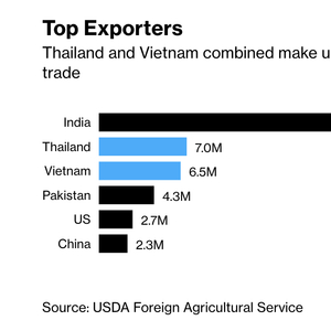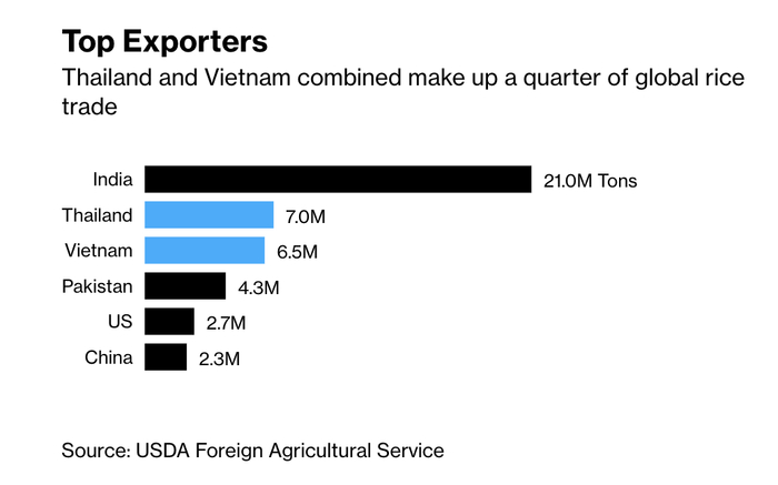泰国和越南两国合计占全球大米贸易的四分之一。