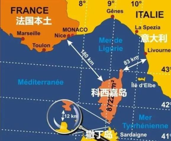 科西嘉岛面积8600平方公里,人口35万,距法国大陆约180公里,距离意大利半岛反倒只有83公里。