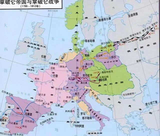 1814年,在第六次反法联军的帮助下,波旁王朝复辟,拿破仑在流放过程中病死在圣赫勒拿岛。