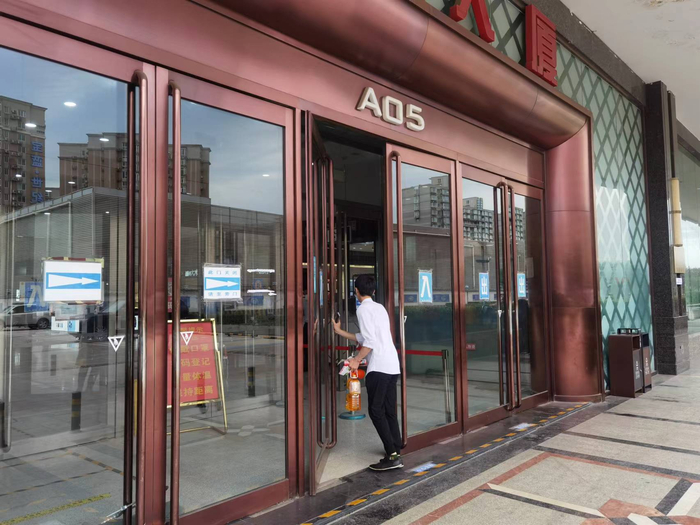 5月29日,位于海淀区的世纪金源购物中心重新开放,市民扫码查看核酸48小时阴性证明进入商场购物。