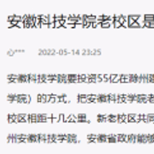 安徽科技学院老校区要搬迁到滁州?省教育厅回复