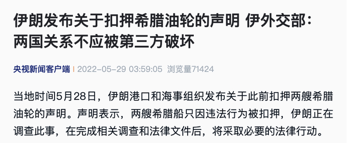 扣押事件的发生或将引发全球石油市场和海运行业的恐慌。据报道,根据劳氏船级社数据,希腊是航运强国,希腊企业拥有全球近四分之一的超级油轮。