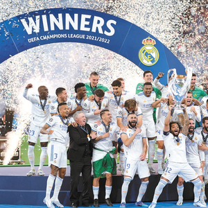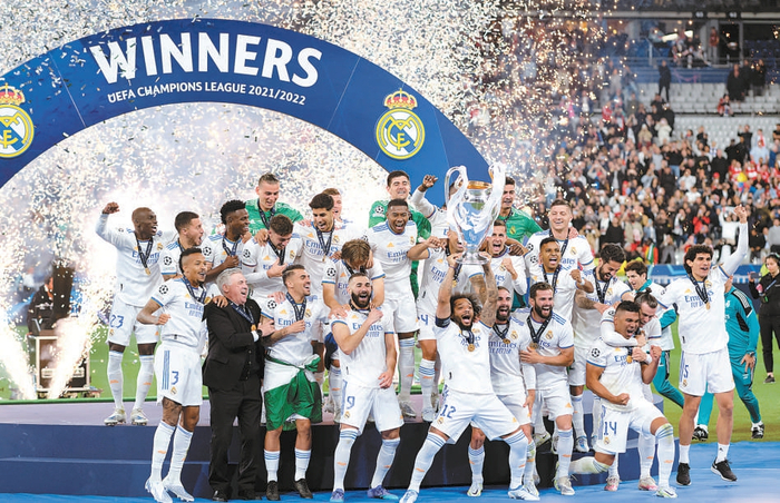 拿下队史第14个欧冠冠军的皇马,在赛事总冠军榜上大幅领先第二名、7次夺冠的AC米兰队。场外运筹帷幄的主帅安切洛蒂也创造了历史,成为史上首位4次率队站上“欧洲之巅”的主教练。62岁的安帅动情地说:“这是一场困难的比赛,我们承受了很大的压力,特别是上半场。但大家按照部署一步一步地踢,最后完成了任务,我们配得上这个冠军。”