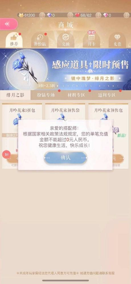 (图说:用5岁小朋友的身份信息注册后,无法在《闪耀暖暖》内充值)