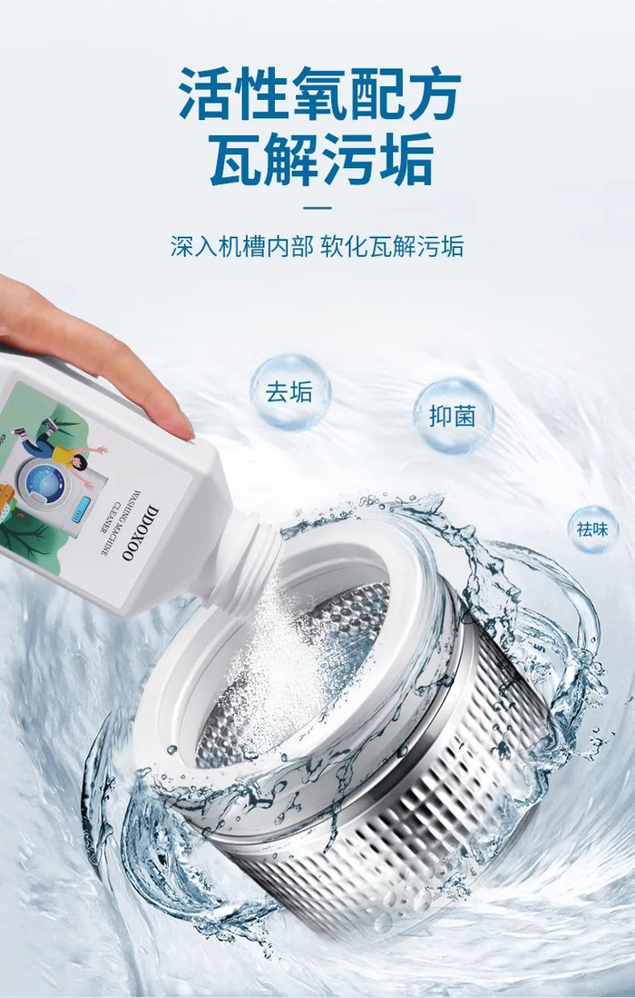 而且它不仅能够除霉去菌,甚至还有清新气味的作用,洗完以后不用担心污垢水垢的味道遍布筒内。