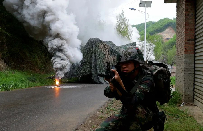 近日,火箭军某部合成演练现场,任务官兵精神紧绷、动作迅速,从容应对来自“战场”上的各类突发特情。