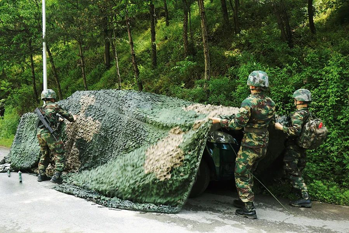 “嘟嘟嘟……”“命你部于XX时转进至指定地域,并完成宿营伪装!” 开训即严!战幕刚刚拉开,演练直接进入白热化阶段。该部官兵迅速整理行囊,全副武装驱车前往目标地域。