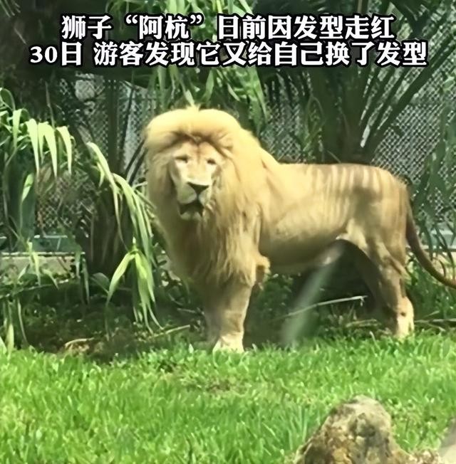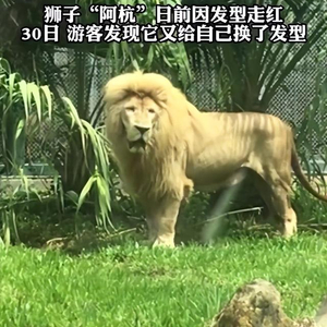 狮子“阿航”日前因发型走红,30日游客发现它又给自己换了发型。
