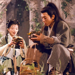 《笑傲江湖》1996年TVB版剧照,令狐冲和小师妹