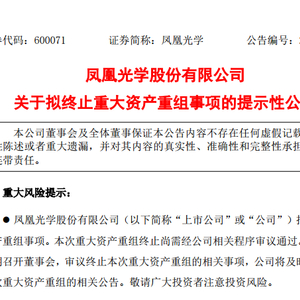 5月30日消息,日前凤凰光学发布公告称,由于本次交易相关审批和备案工作未能取得上级主管部门的同意意见,经审慎研究分析,为切实维护公司及全体股东利益,拟终止本次重大资产重组事项。