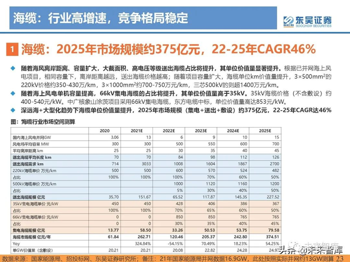 1 海缆:2025年市场规模约375亿元,22-25年CAGR46%