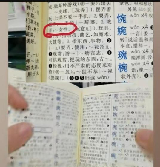 她打开新版《新华字典》,里面对玩的解释是:1、摆弄着玩: 上课不要玩手机。2、耍弄、拨弄:玩手段,玩辞藻。3、戏弄:玩弄女性……当她看到这个组词时,惊呆了,“如果是小朋友查到那个词的解释,我都不晓得该怎么跟她解释。”