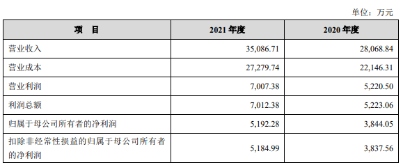 2020年、2021年,长葛蓝天营业收入分别为28,068.84万元、35,086.71万元,归属于母公司所有者的净利润分别为3,844.05万元、5,192.28万元,经营活动产生的现金流量净额分别为4,302.82万元、3,813.85万元。