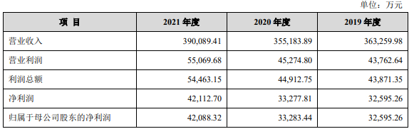 2019年、2020年和2021年,蓝天燃气营业收入分别为363,259.98万元、355,183.89万元、390,089.41万元,归属于母公司股东的净利润分别为32,595.26万元、33,283.44万元、42,088.32万元,经营活动产生的现金流量净额64,805.75 万元、59,184.12万元、64,805.75万元。