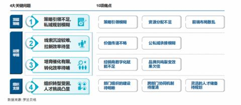 与传统的营销方式相比,私域运营能够帮助车企更高效、广泛地提升营销效能,带来更加持久的增长动能,然而,根据罗兰贝格的研究发现,车企在布局私域的过程中,依然存在从顶层策略、运营举措以及组织支撑方面的多项痛点需要解决。