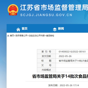 中国质量新闻网讯 据江苏省市场监督管理局发布的《省市场监管局关于14批次食品抽检不合格情况的通告(2022年第14期)》,江苏省市场监督管理局近期完成食品安全监督抽检任务409批次。其中,抽检饮料81批次,根据食品安全国家标准检验和判定,不合格1批次。