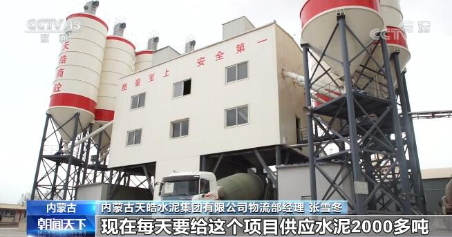 内蒙古天皓水泥集团有限公司物流部经理 张雪冬:随着混凝土浇筑工作大规模开始,每月(水泥)需求量以10%以上的速度增长,现在每天要给这个项目供应水泥2000多吨。