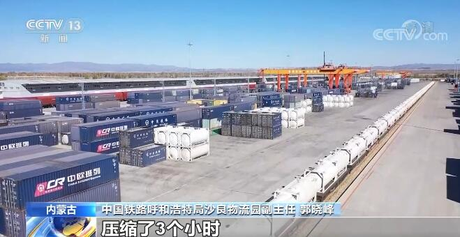 中国铁路呼和浩特局沙良物流园副主任 郭晓峰:针对水泥运输特点,我们调配装卸机具,水泥罐体可以直接从汽车放到专用平板车上,一列水泥装卸作业时间由过去6个小时压缩了3个小时。