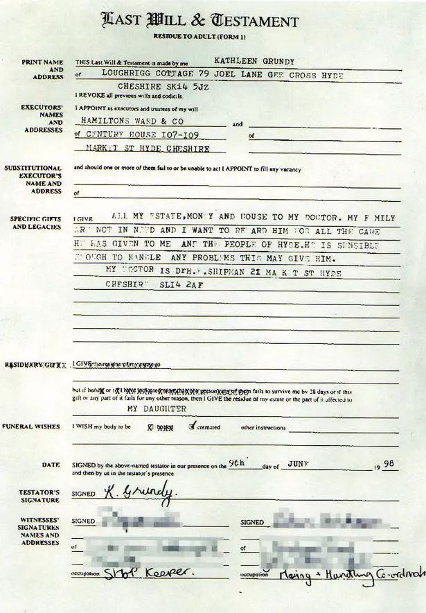 “你母亲在遗嘱上写道,要把所有钱和房子都留给希普曼医生,以感谢他对自己与海德居民的照顾。”