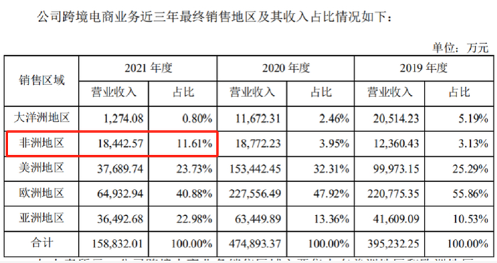 与此同时,有棵树不断增加非洲等市场的开拓。以Jumia为首的非洲平台,给有棵树创造了1.8亿收入,占比高达11.61%。