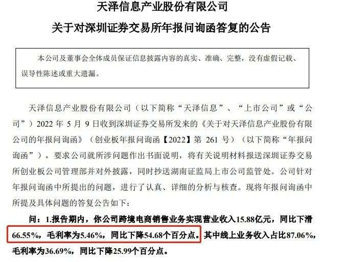 由于营收下滑近7成(15.88亿元),毛利率降至不可思议的5.46%,最终招致深交所问询函。