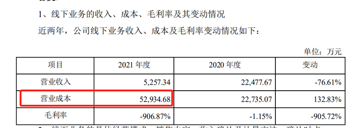 反映到具体数据上是,线下渠道营收约5260万,营业成本却高达 5.3亿。这营业成本主要是由于商品成本构成的,当然,其中还包括部分物流费、渠道费等。