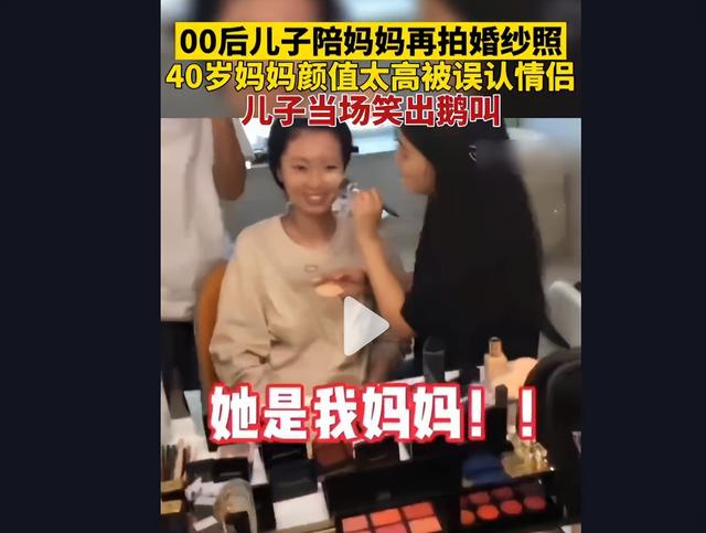00后小伙子带40岁妈妈拍婚纱照,妈妈过于年轻漂亮被误认为是情侣