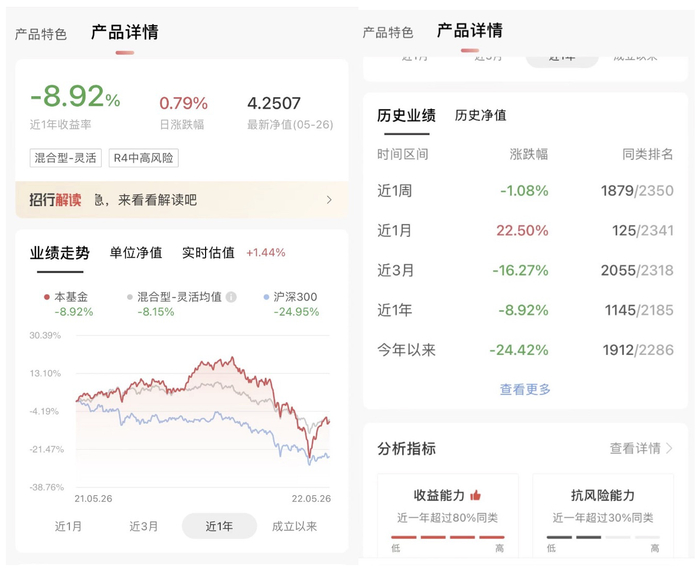 最近因存款利率下调,陈云又再次关注基金,“这几天一看,竟然涨了好多,太后悔了。”陈云将基金的数据展示给时代财经,该基金近一月的涨幅竟高达22.50%,5月27日当天的涨幅在0.79%。