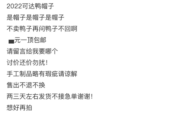 95后女孩小火喜欢手工编织,之前跟着教程学做过很多小件作品,可达鸭爆火后,她把自己手工制作的小帽子戴在可达鸭头上,随手发了条朋友圈,结果引来了很多朋友询问。