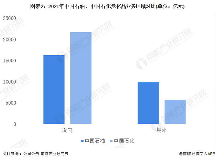 2、危化品业务区域布局及运营现状对比:境内市场中石化营收更高
